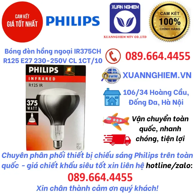 Bóng đèn hồng ngoại 375W Philips IR375CH R125 E27 230-250V CL 1CT/10