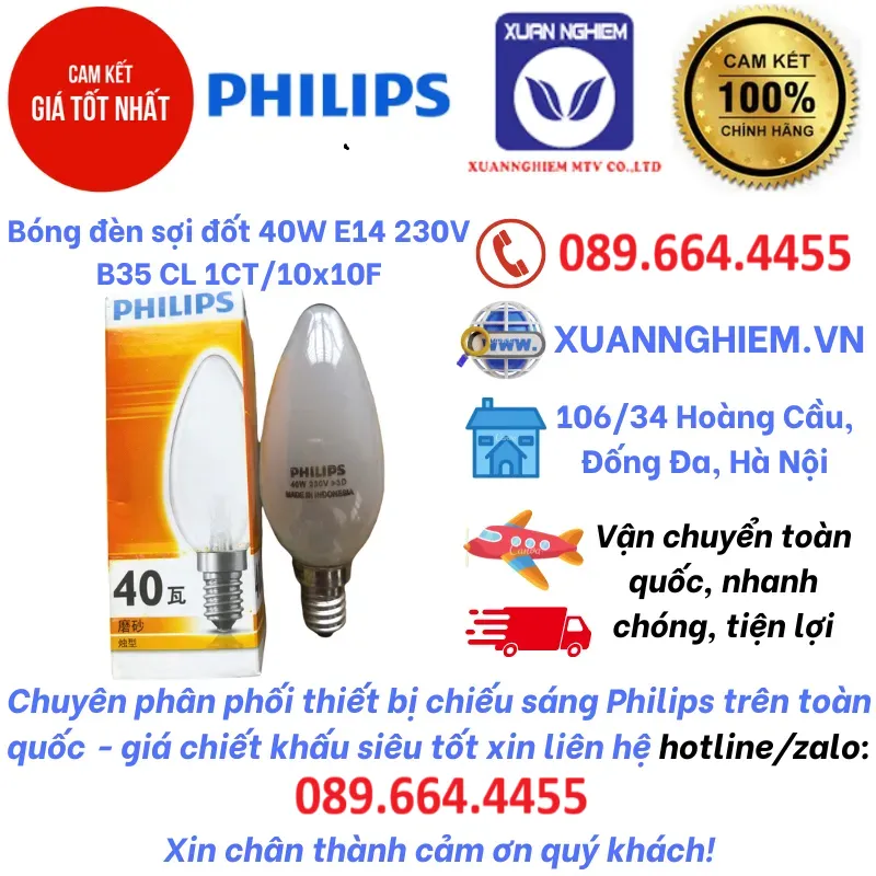 Bóng đèn sợi đốt halogen 40W E14 230V B35 CL 1CT/10x10F Philips