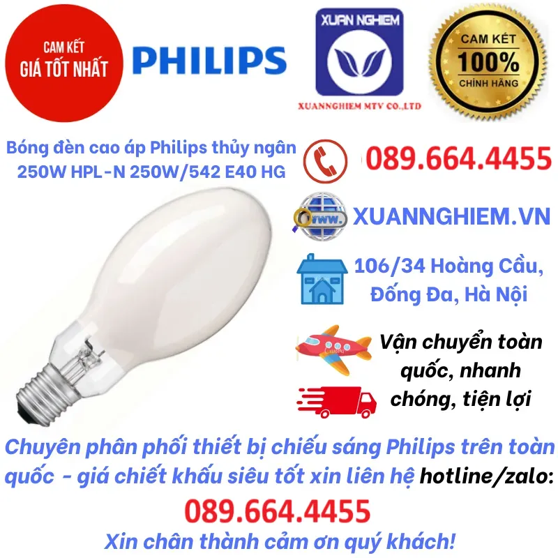 Bóng đèn cao áp Philips thủy ngân 250W HPL-N 250W/542 E40 HG SLV/12