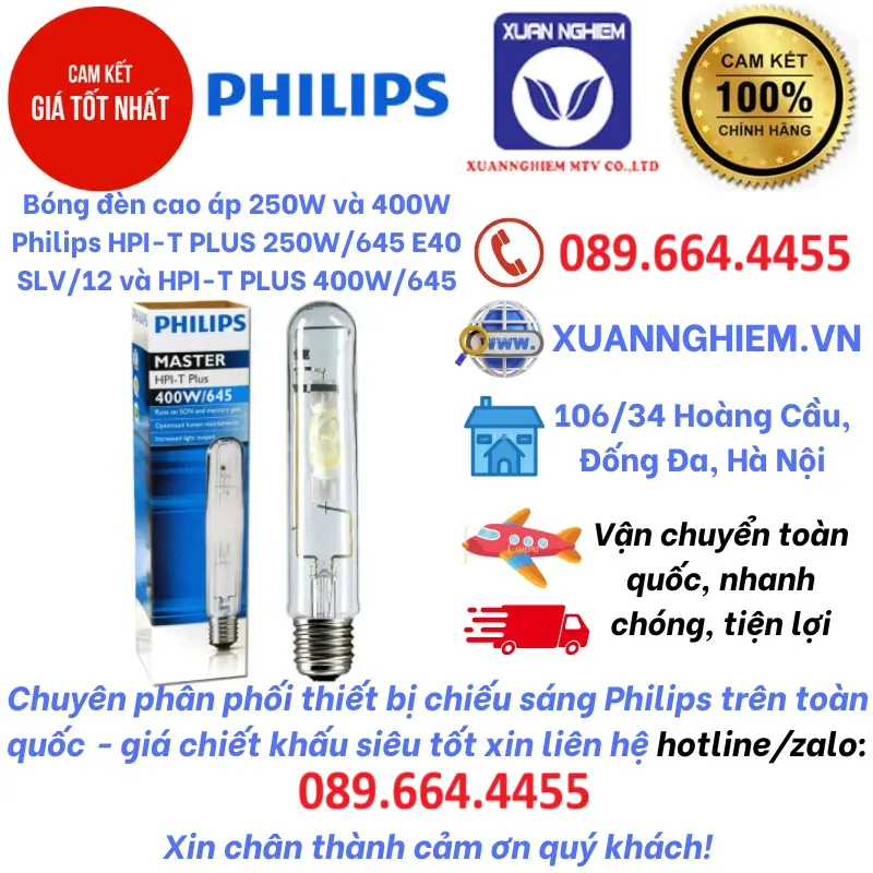 Bóng đèn cao áp 250W và 400W Philips HPI-T PLUS 250W/645 E40 SLV/12 và HPI-T PLUS 400W/645