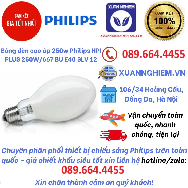 Bóng đèn cao áp 250w Philips HPI PLUS 250W/667 BU E40 SLV 12