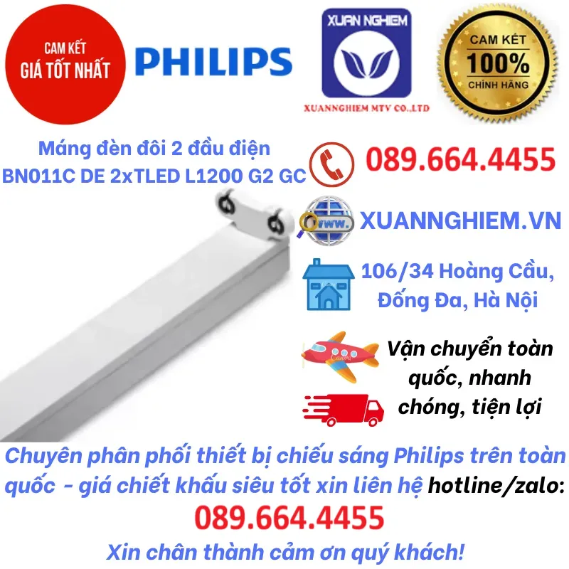 Máng đèn đôi 1 đầu không chóa Philips BN011C 2xTLED L1200 G2 GC