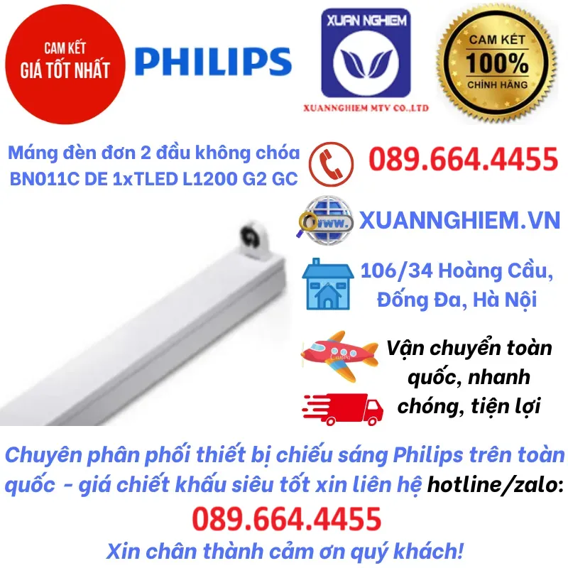 Máng đèn đơn 2 đầu không chóa BN011C DE 1xTLED L1200 G2 GC Philips