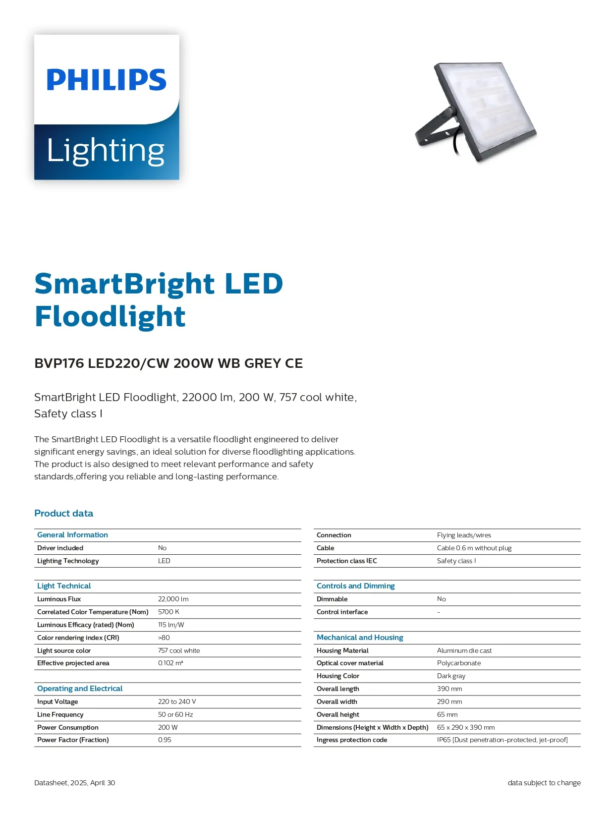 Đèn LED pha BVP176 LED220 200W CW WB GREY CE