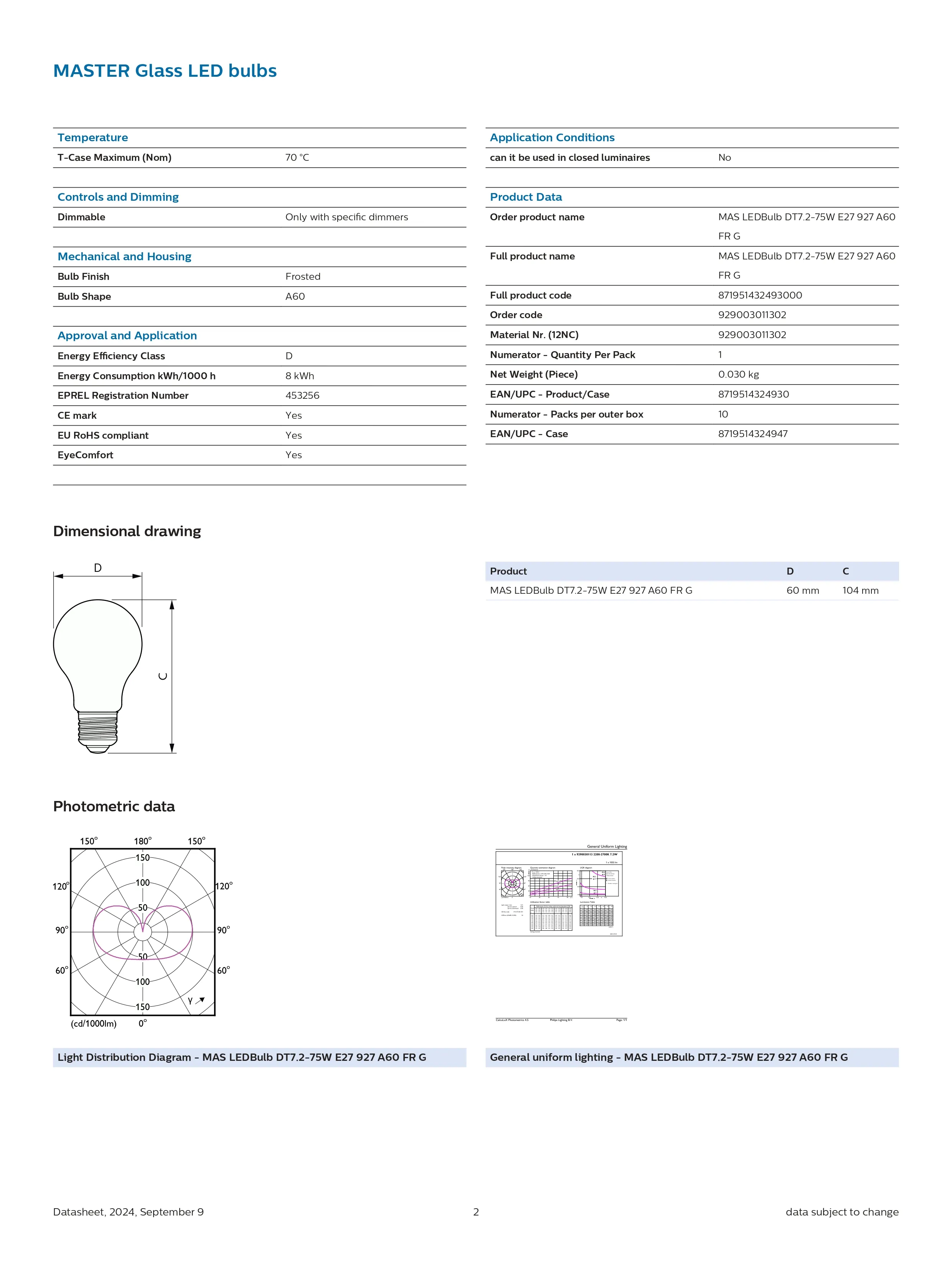 Bóng đèn MAS LEDBulb DT 7.2-75W E27 927 A60 FR G