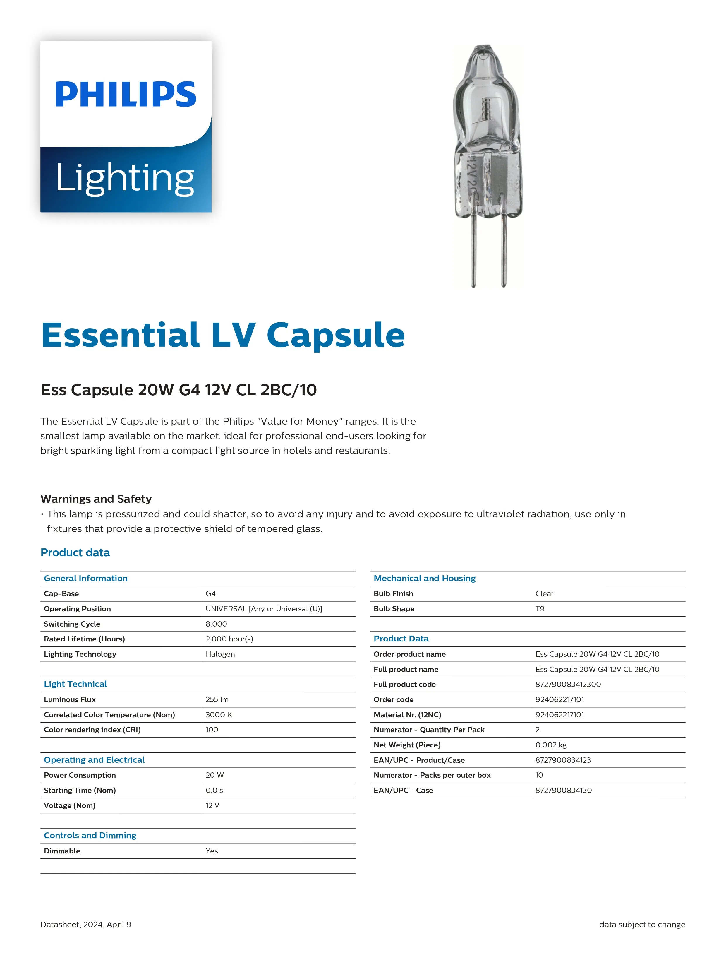 Bòng đèn Philips Essential Halogen 12v 20w G4